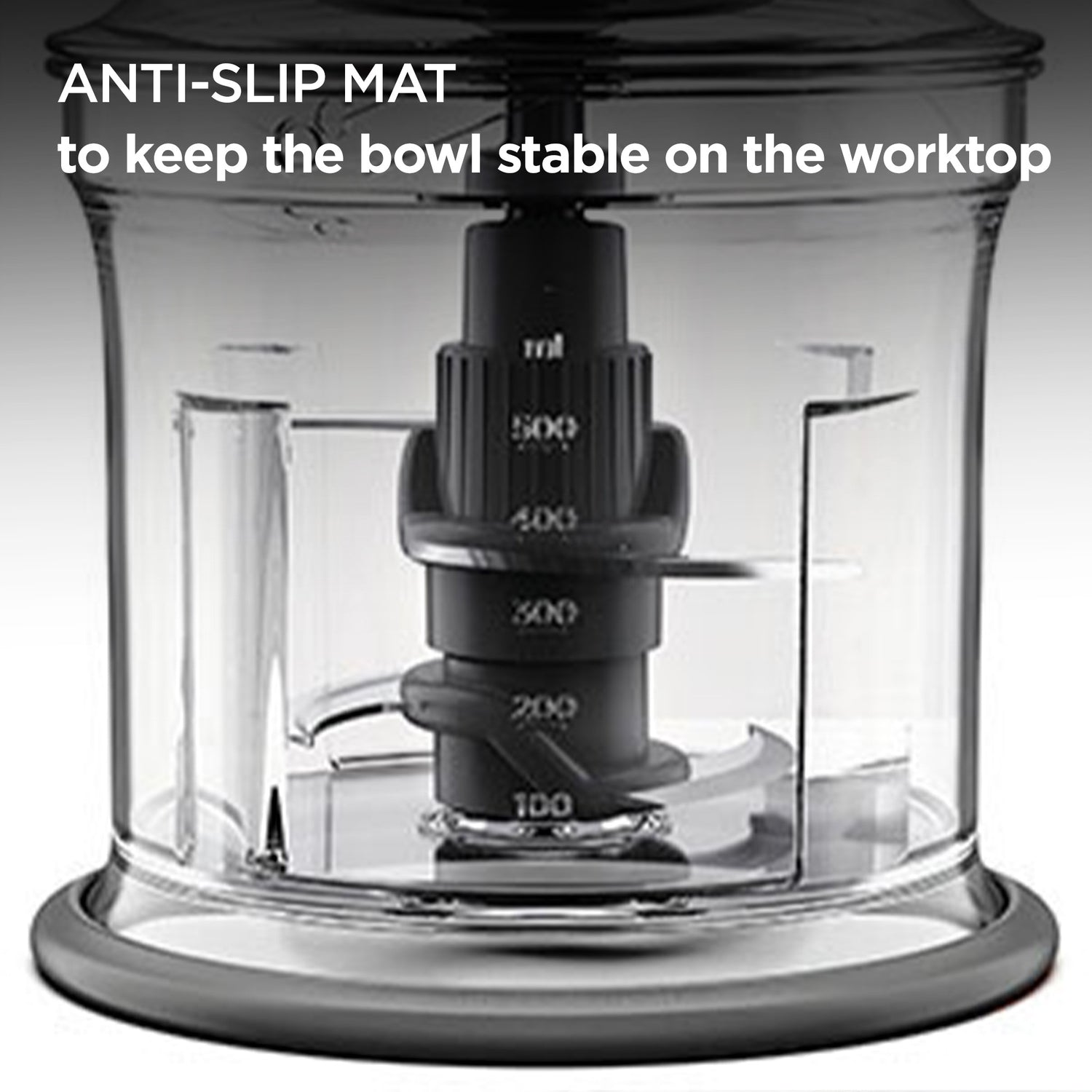 A beautifully designed chopper with the quad blade system. It features a 0.5 litre working capacity, making it perfect for the quick preparation of herbs, nuts, dips, ice-crushing and baby food.